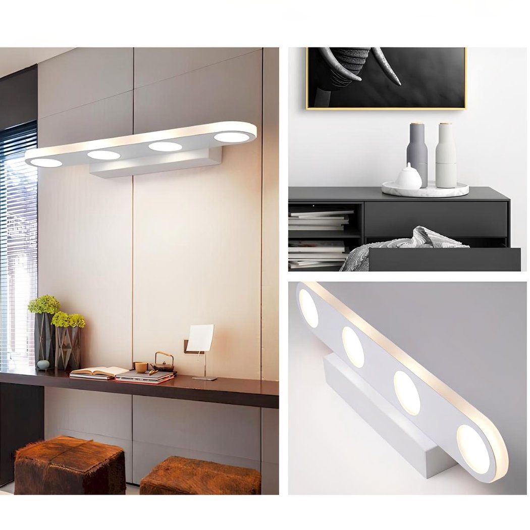 El moderno aplique de baño blanco tiene un diseño limpio y contemporáneo. Con sus 4 ó 6 círculos de iluminación, ofrece una luminosidad óptima. Adecuado para el cuarto de baño, también puede integrarse en cualquier tipo de estancia para darle un toque de modernidad.