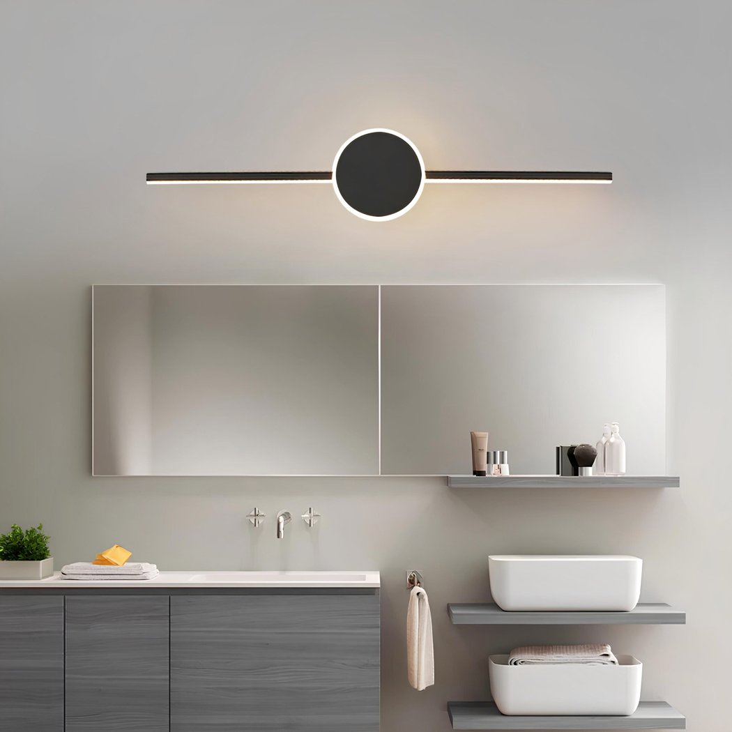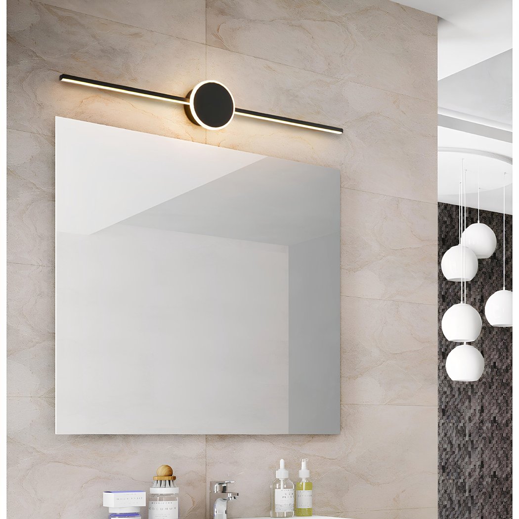 Con su original diseño, este aplique negro alargado para el cuarto de baño es todo un acierto para su zona de lavabo. Con su elegante estilo tubular y su centro redondo, aporta un toque moderno a su decoración. Elija la longitud y el color de la luz.