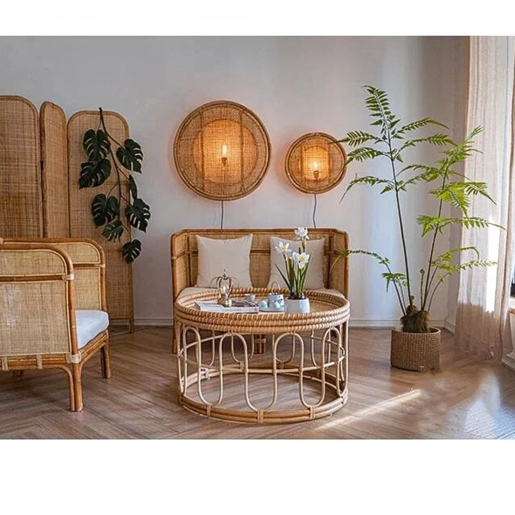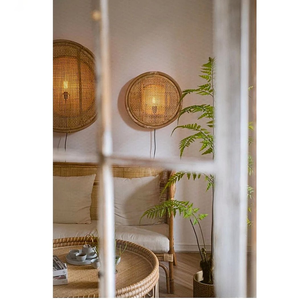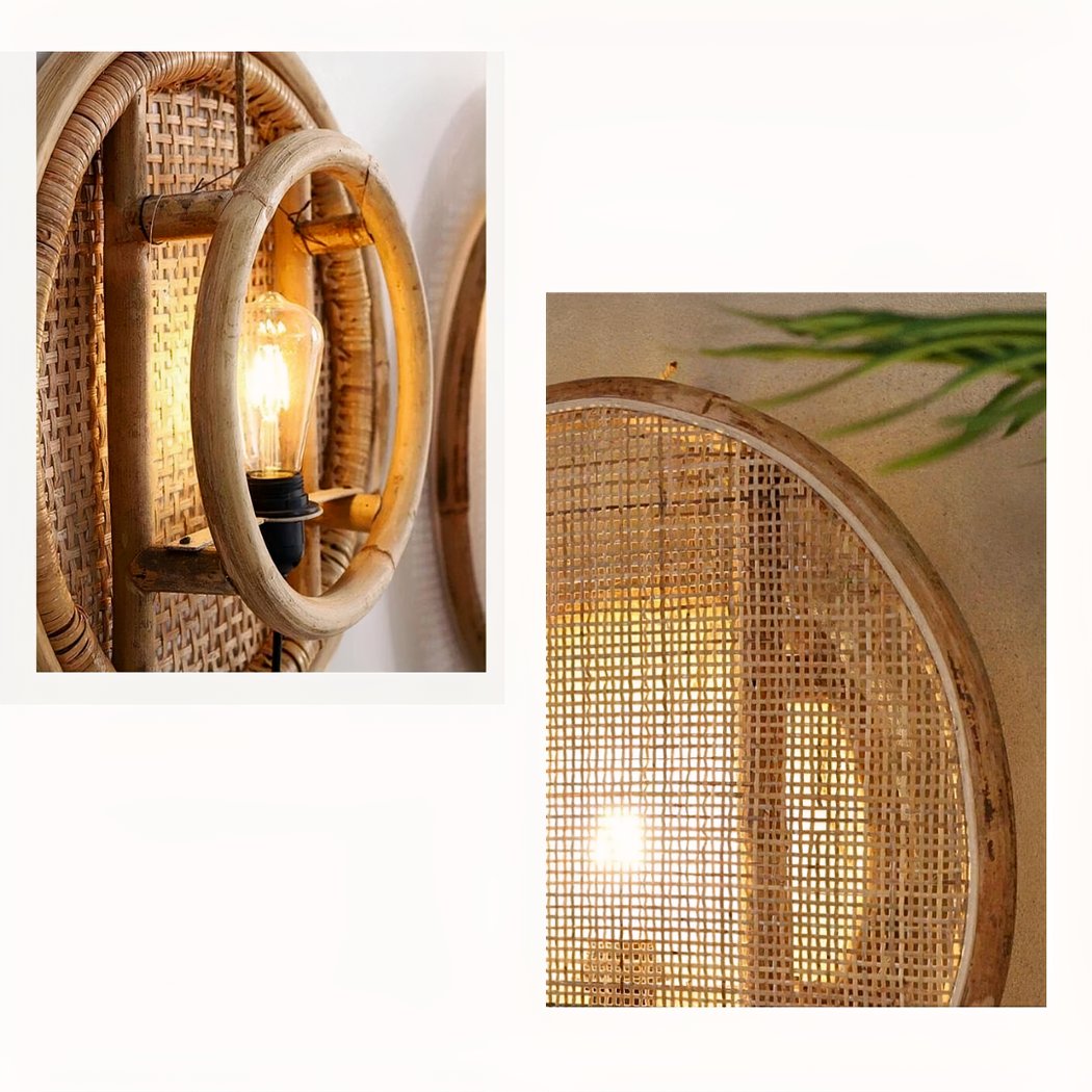 Añada un toque natural a su decoración con nuestro aplique de caña redondo de estilo bohemio. Su diseño añade un ambiente cálido y relajado a su espacio vital. Perfecto para crear un ambiente relajado y acogedor, este aplique añade un toque de carácter y originalidad a su interior.