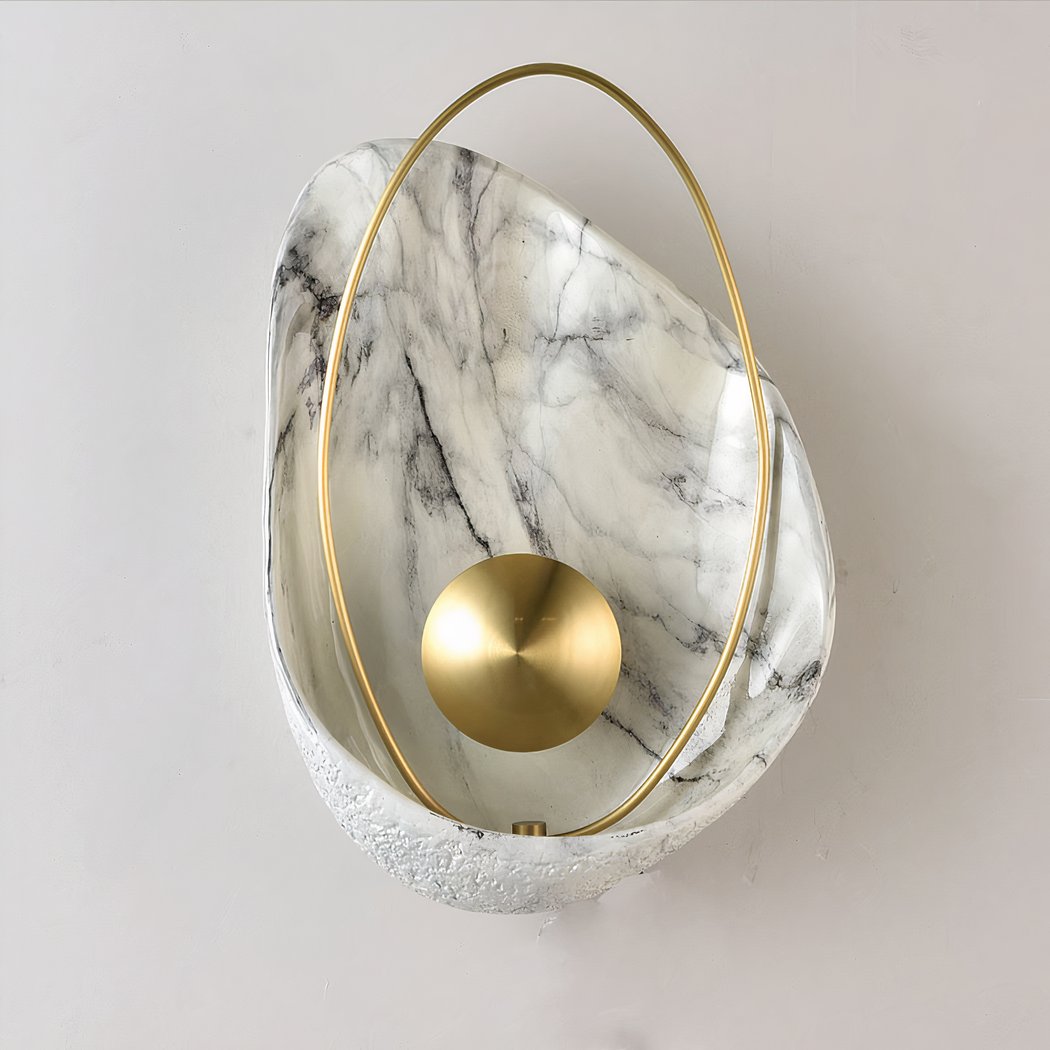 Este aplique de concha y perla es una elegante obra de arte. Su efecto mármol recuerda la belleza de una concha, mientras que su perla luminosa añade un toque de brillo a su interior. Disponible en blanco o negro, aportará un toque de modernidad a su espacio.