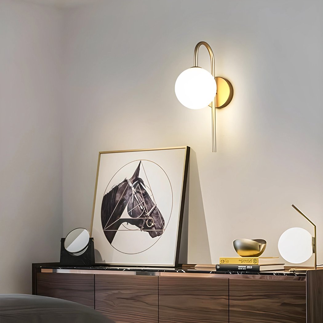 Regálese nuestro impresionante aplique de pared con tallo curvado y globo para añadir un toque de sofisticación y modernidad a su espacio. Disponible en dos colores y una selección de colores de luz, elija el modelo que mejor se adapte a su estilo y preferencias.
