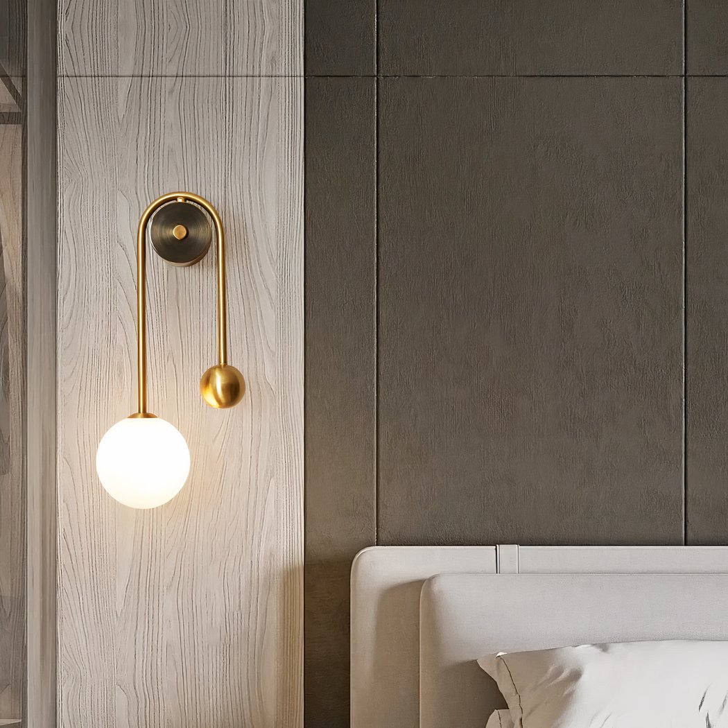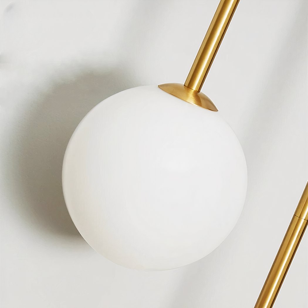 El aplique dorado con bola LED es una forma elegante y moderna de iluminar su hogar. Una de las bolas está iluminada por un LED, mientras que la otra está chapada en oro para mayor elegancia. Las bolas están sujetas por un tallo dorado para un acabado refinado.