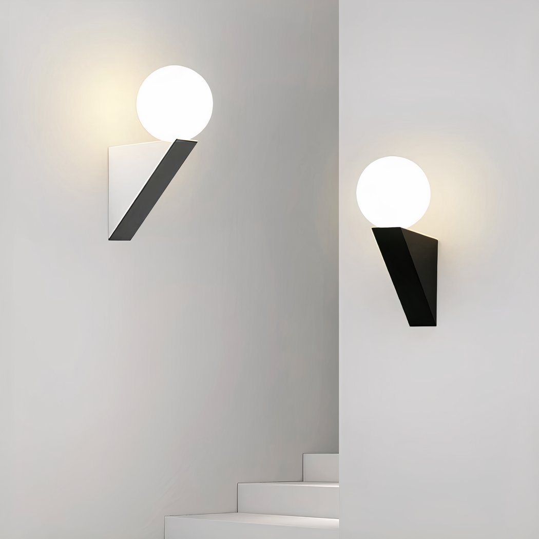 Este aplique en forma de ángulo con una bola luminosa que parece equilibrarse en la parte superior ofrece un efecto visual tridimensional. La suave luz se difunde gracias al cristal esmerilado de la bola luminosa. Disponible en blanco o negro, este aplique es perfecto para cualquier espacio interior.