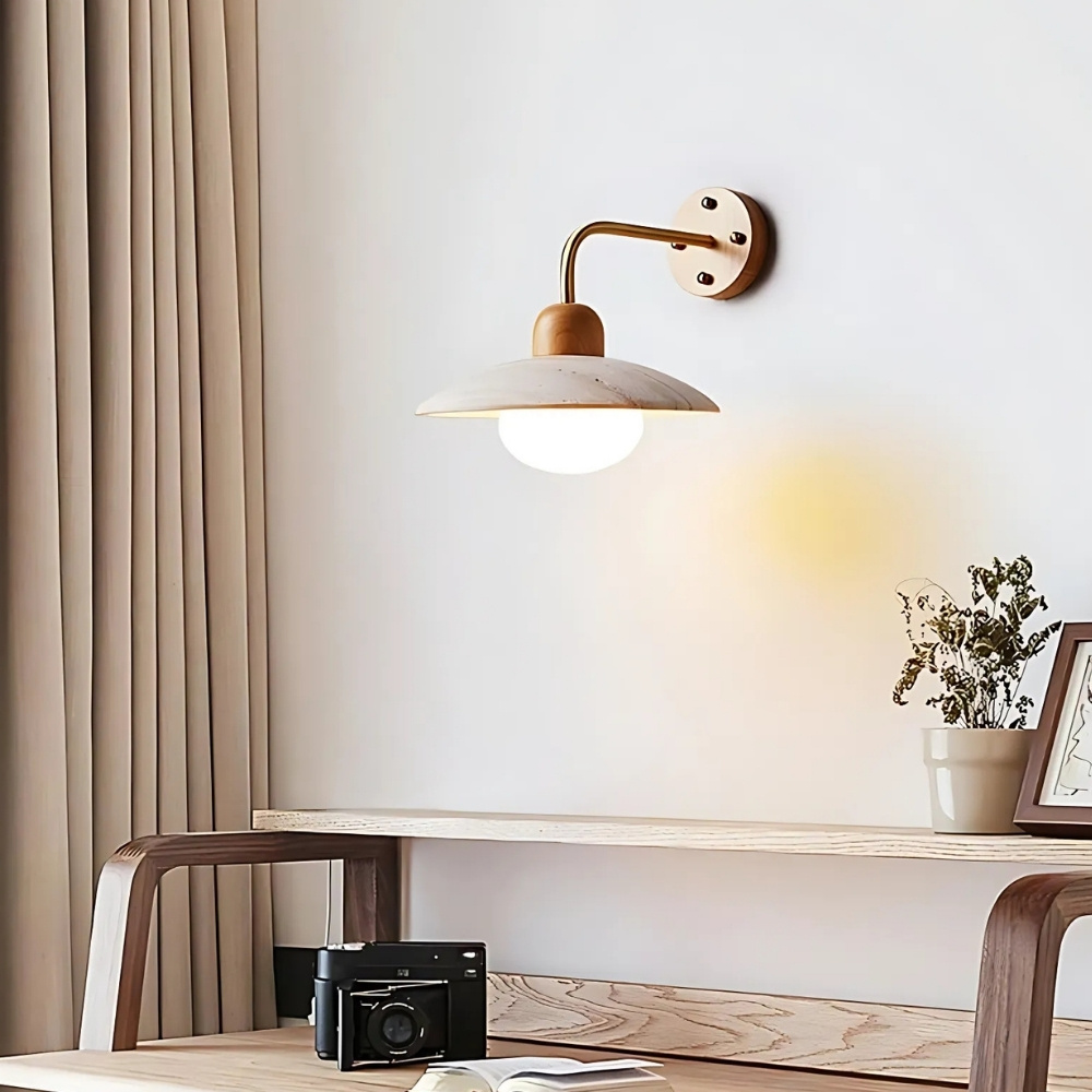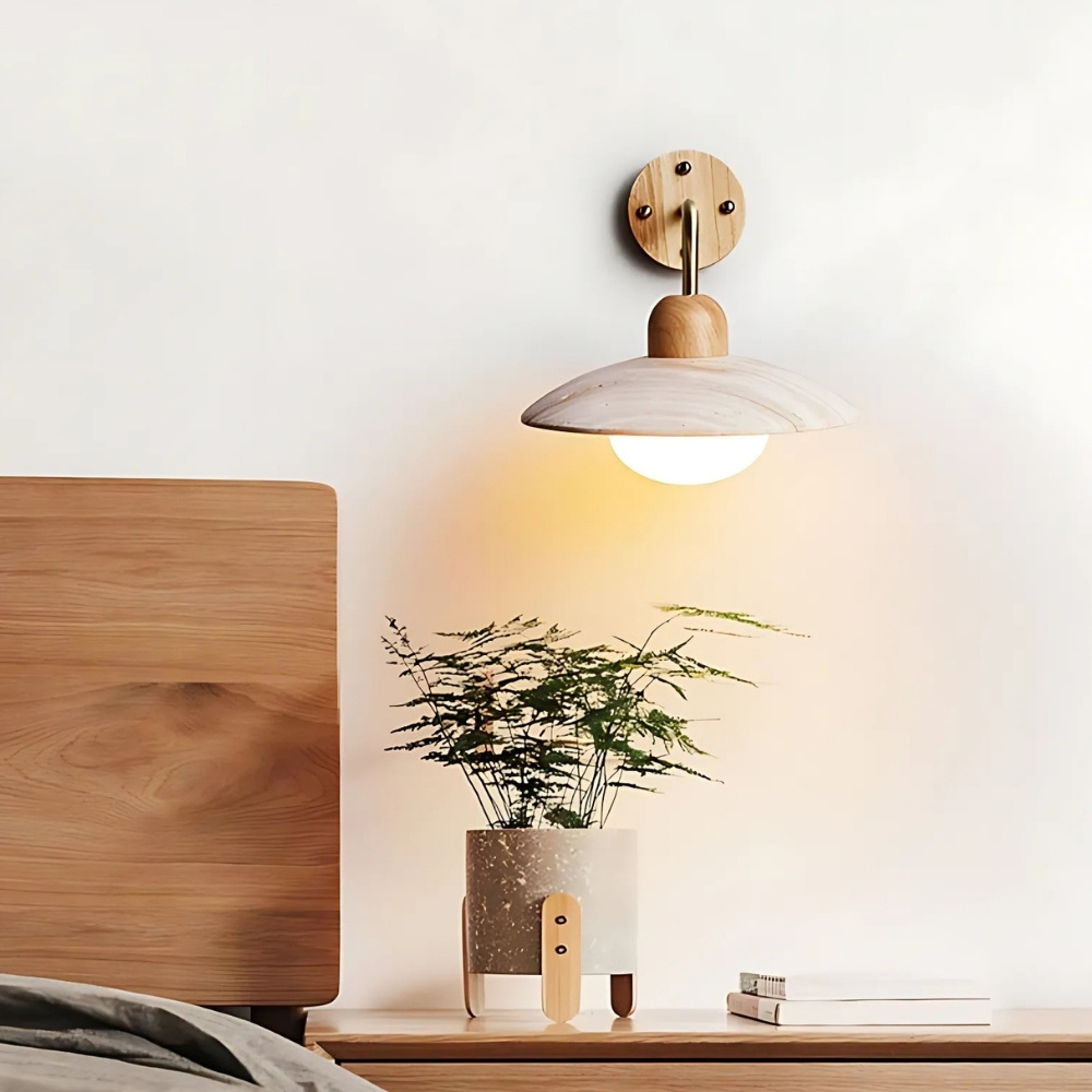 Lámpara de pared en travertino y madera