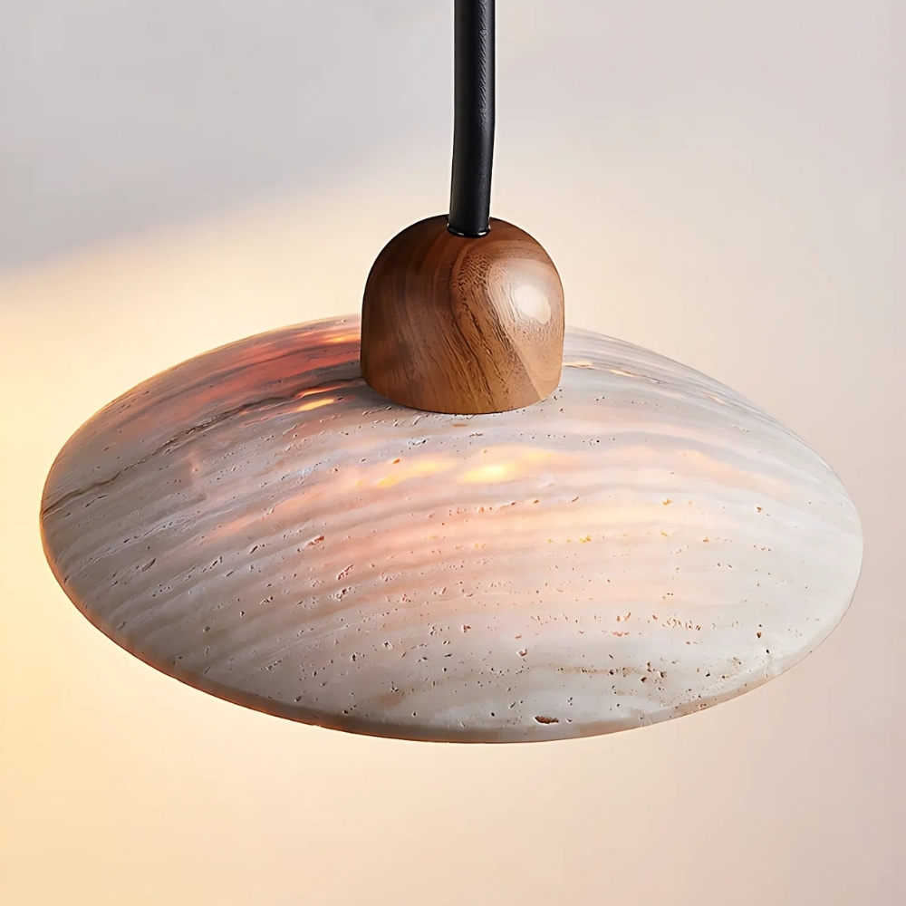 Añada un toque de autenticidad a su hogar con este aplique de travertino y madera. Su diseño atemporal combina materiales naturales para crear un ambiente relajante. Ideal para un dormitorio o un despacho, proporciona una iluminación suave y envolvente, perfecta para relajarse o leer.