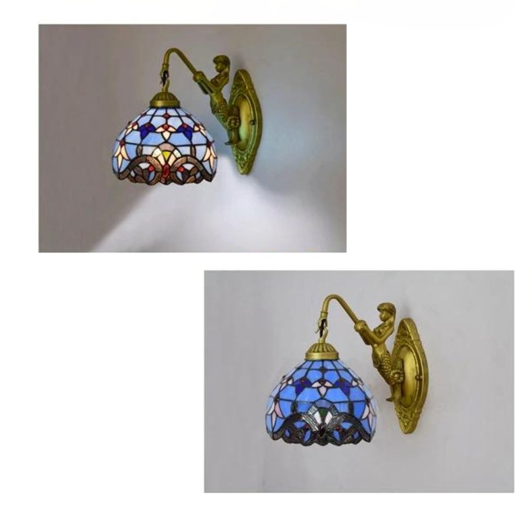 Le encantará nuestro magnífico aplique estilo Tiffany en tonos azules Su luz suave y cálida llenará de color su hogar al caer la noche. Le encantará la atmósfera que crea en su decoración interior, aportando refinamiento a cada rincón de su hogar.