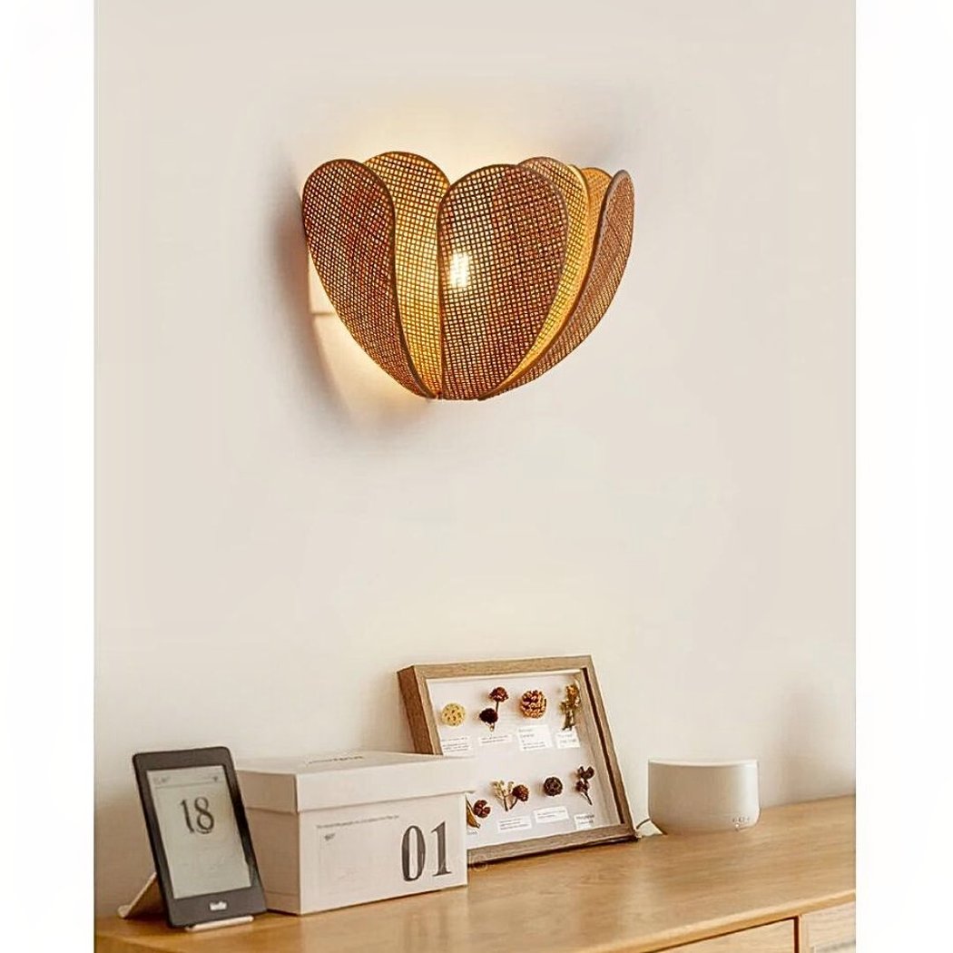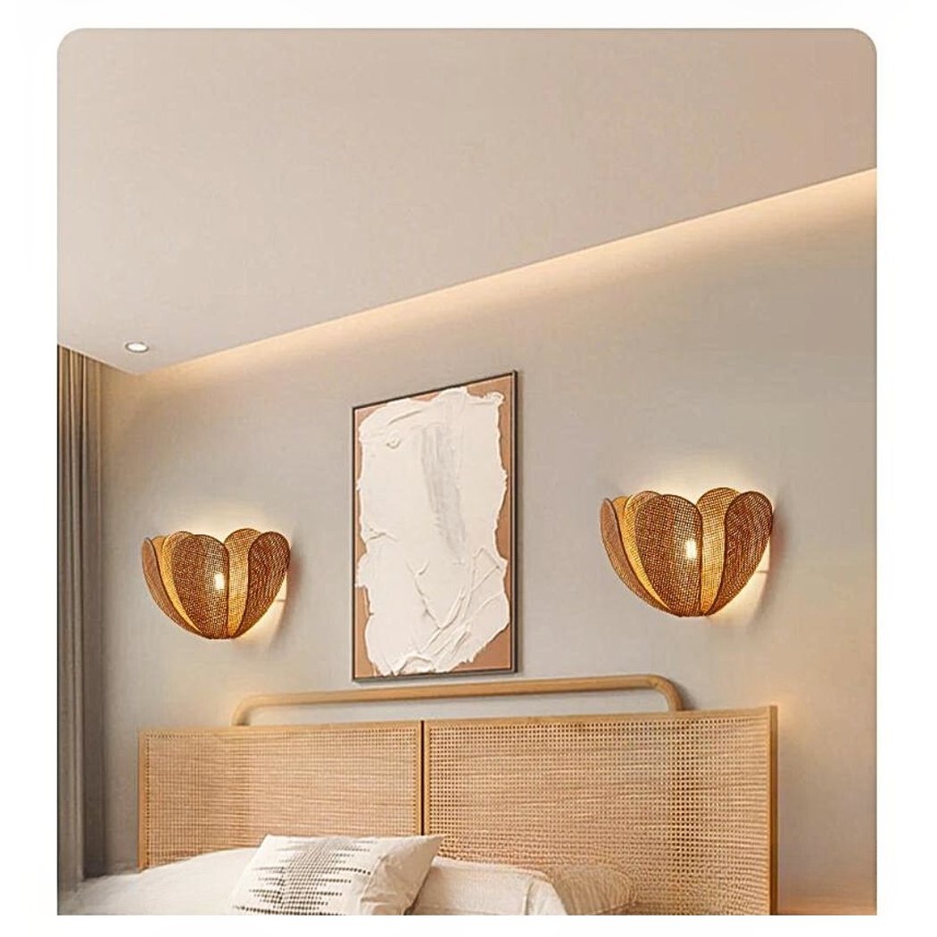 Añada un toque de delicadeza floral a su espacio con nuestro aplique de pared artesanal de flor de caña. Cada hebra de ratán atada a mano revela una meticulosa artesanía, creando una pieza que es a la vez natural y elegante. Deje que este aplique ilumine su interior con encanto y autenticidad.