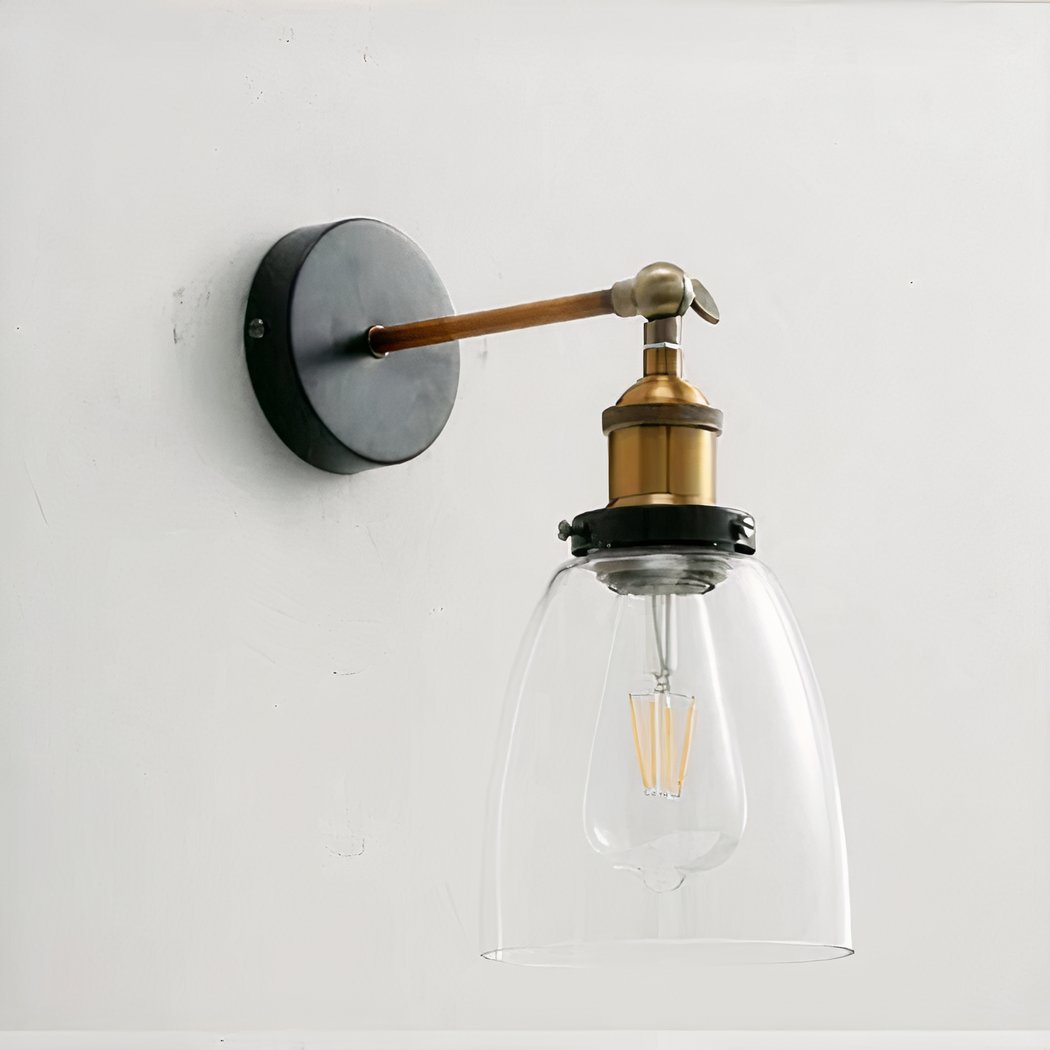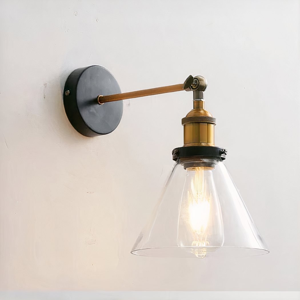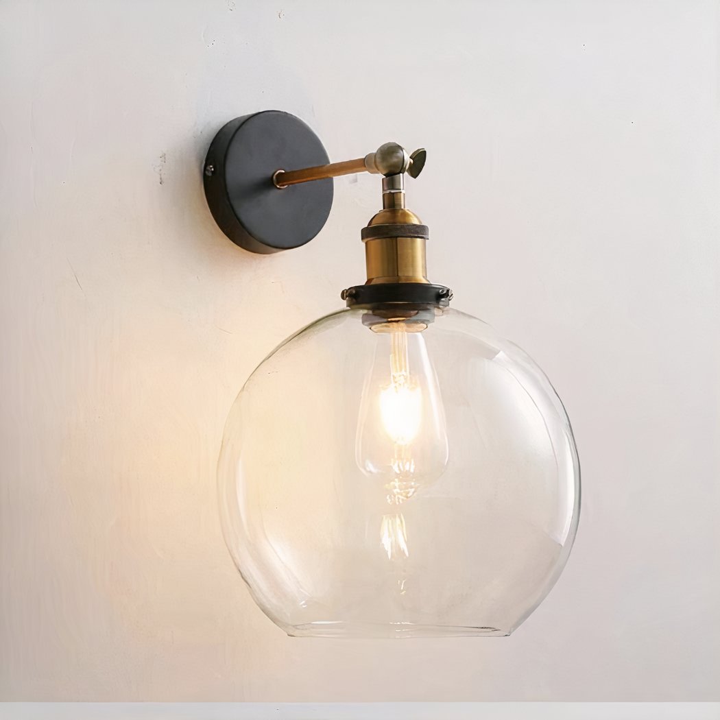 Aplique de pared con pantalla de cristal transparente de estilo industrial