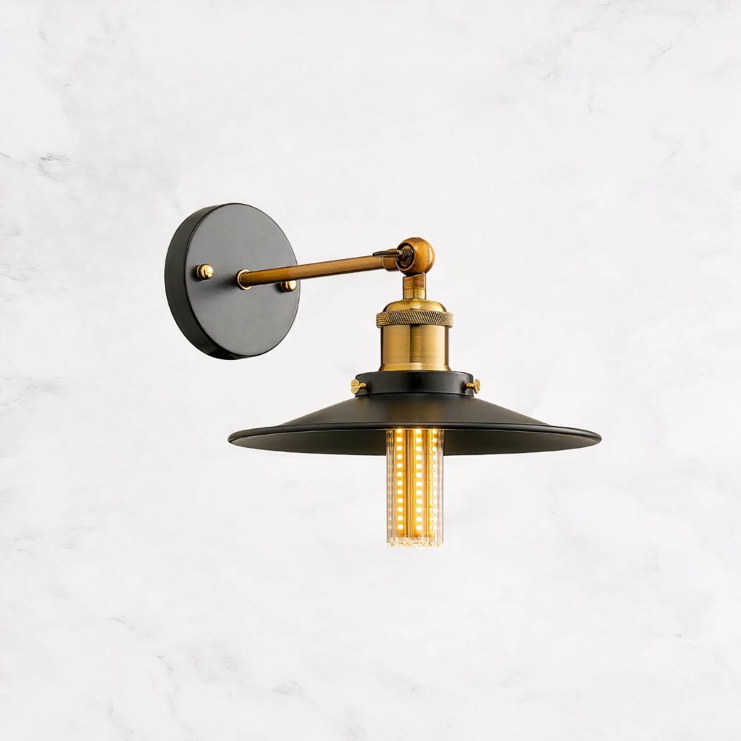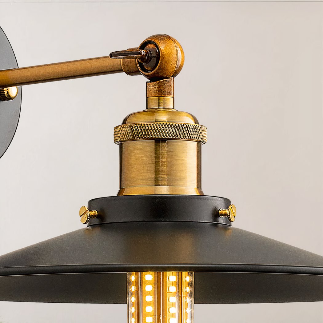 El aplique industrial con pantalla de metal negro ofrece un diseño elegante. El contraste entre el metal negro y el dorado añade un toque elegante a su interior. Puede elegir entre una pantalla plana para un aspecto moderno o una pantalla acampanada para un estilo más clásico.