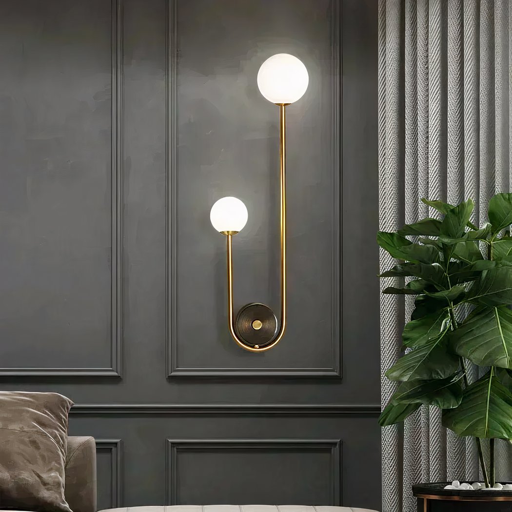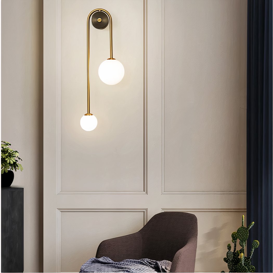 Este elegante aplique LED de 2 bolas tiene un diseño excepcional. Sus dos fuentes de luz proporcionarán una bonita iluminación a su hogar. Su estructura dorada añade un toque de elegancia. Perfecto para iluminar y decorar su salón, dormitorio o cualquier otro espacio vital.