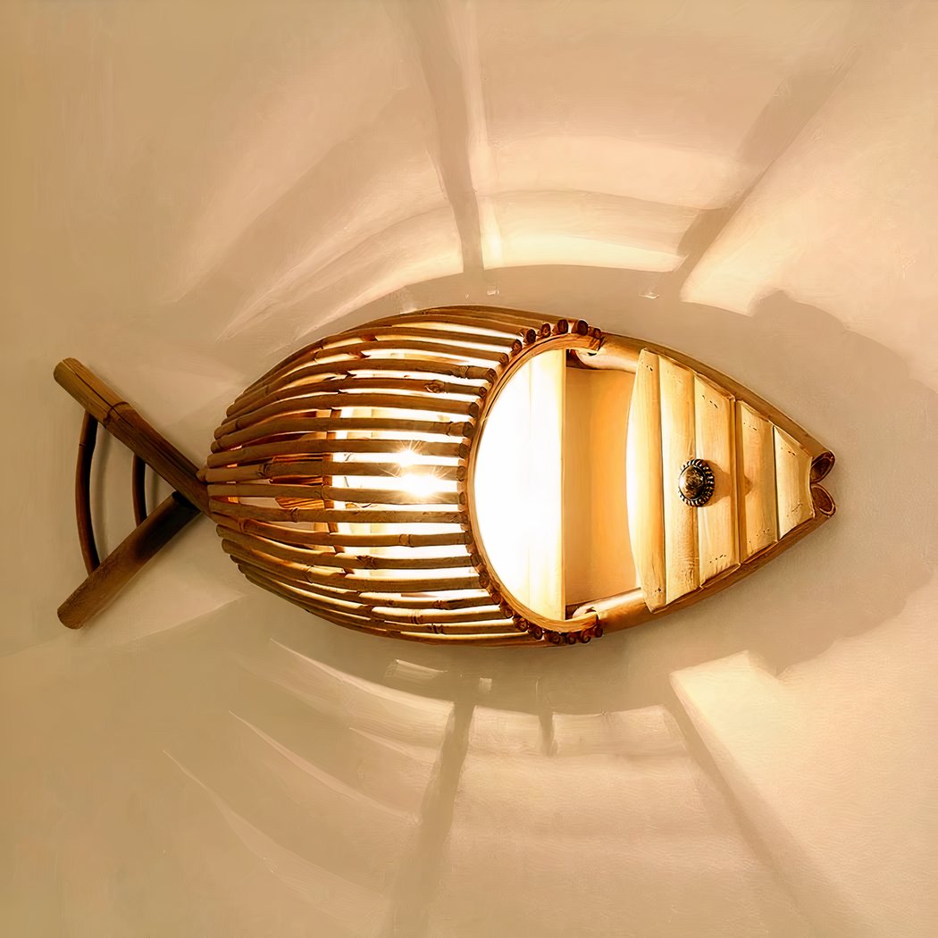 Sumérjase en una atmósfera suave y poética con nuestro aplique de mimbre en forma de pez. Déjese seducir por su diseño de inspiración japonesa y su luz envolvente. Regálese un remanso de paz y elegancia, y transforme su espacio en un auténtico oasis de serenidad.