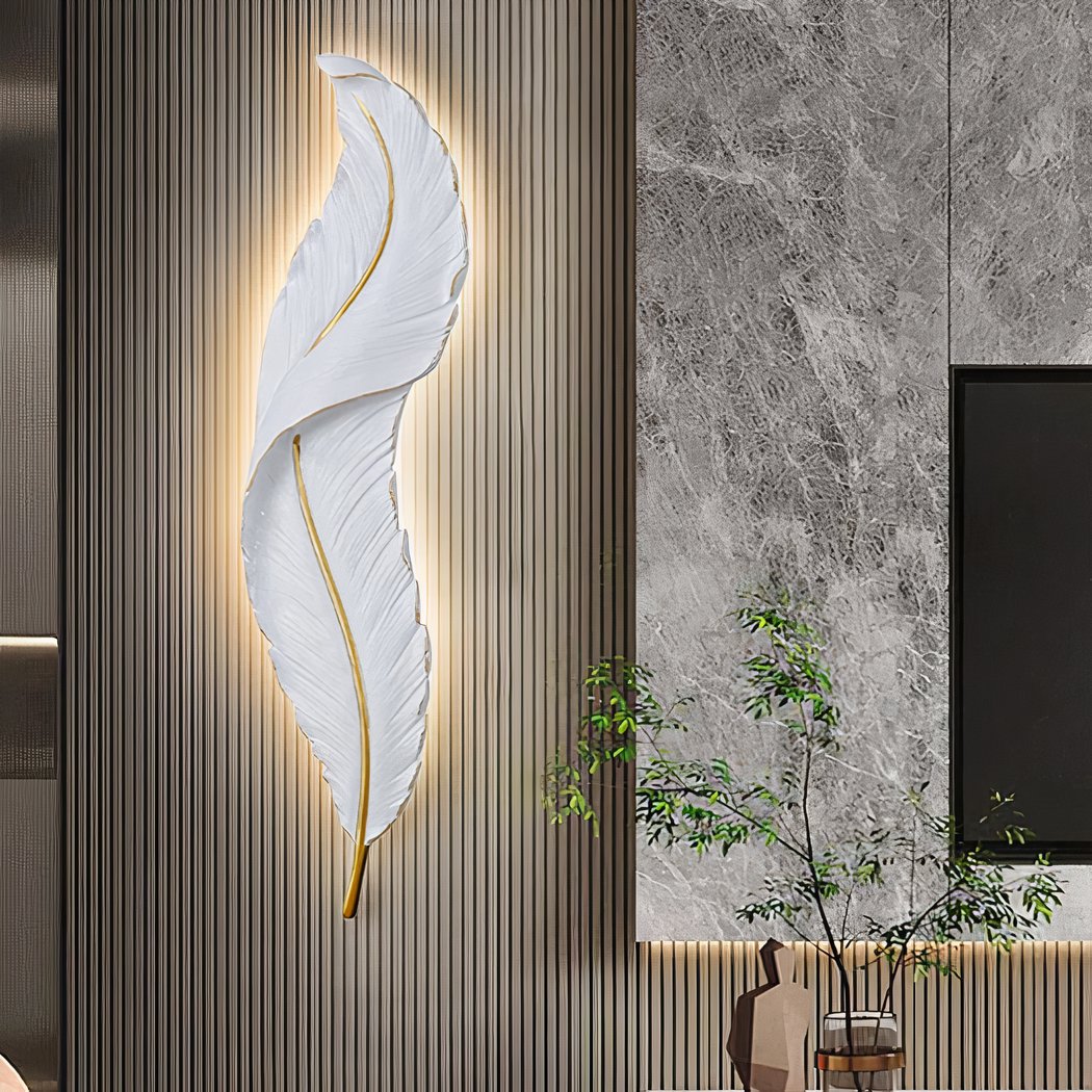 Nuestro moderno aplique de plumas blancas es un accesorio decorativo con un diseño original que aporta un ambiente ligero y suave a su hogar. La luz difusa por detrás crea una atmósfera tenue y decorativa. Fabricado en resina, este aplique tiene un bonito acabado.