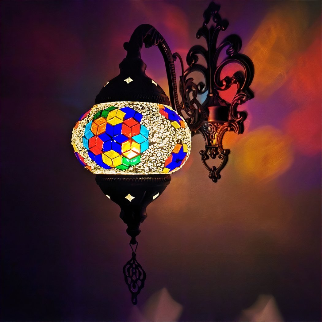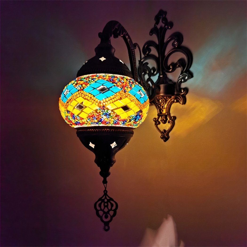 Déjese transportar por la exótica sofisticación de nuestro romántico aplique oriental, una auténtica obra maestra de la artesanía. Inspirado en motivos orientales tradicionales, sublimes mosaicos y delicadas molduras metálicas, proyecta una luz suave y hechizante que se integra armoniosamente en las paredes, añadiendo un toque de elegancia a su espacio interior.