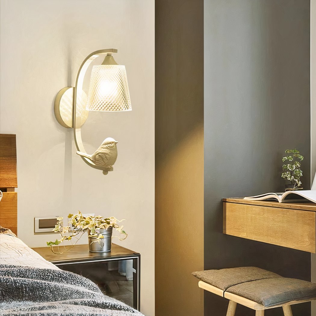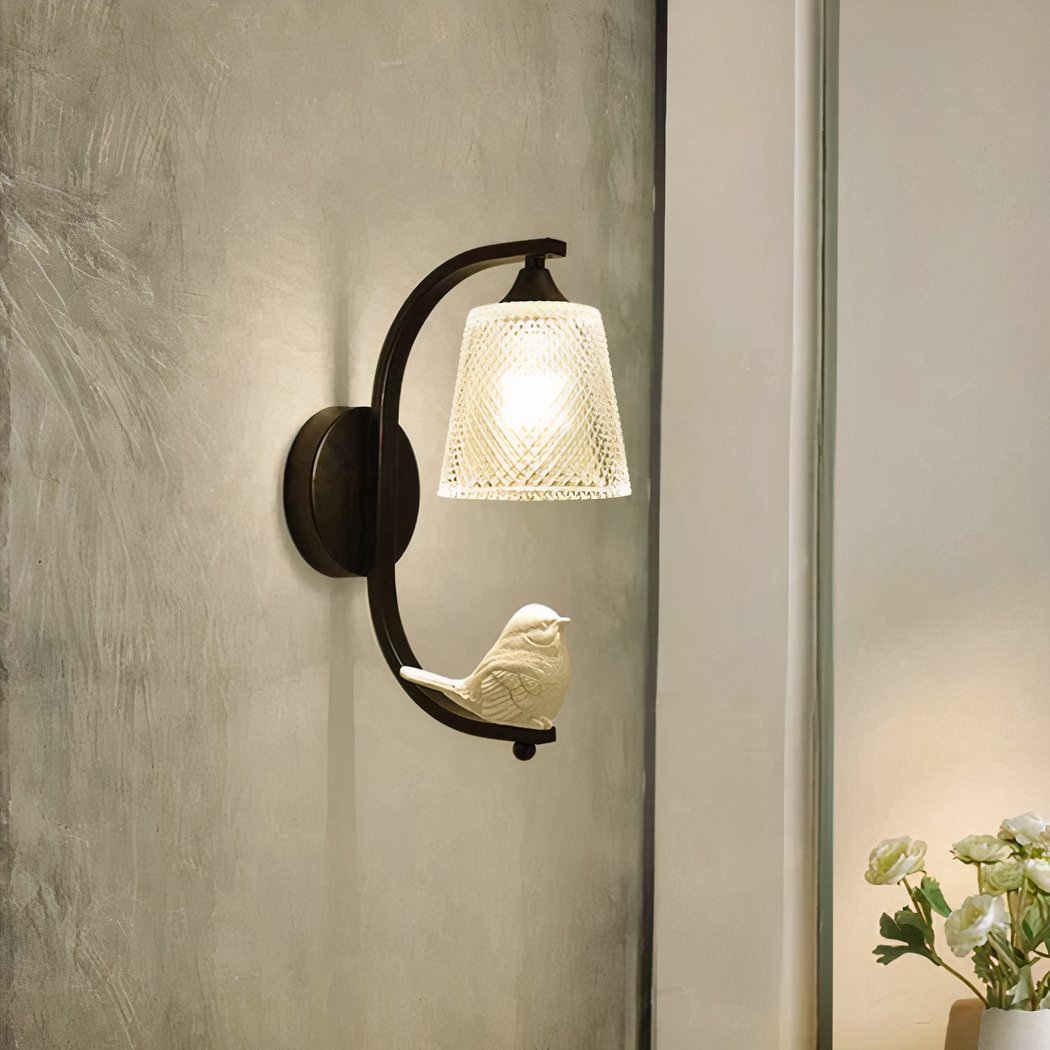 Sumérjase en una atmósfera poética con nuestro aplique de cristal con un pájaro posado. Su encantador diseño añade un toque de encanto y armonía a su espacio vital. La suave luz que emana de su pantalla de cristal crea una atmósfera relajante, perfecta para sus veladas.