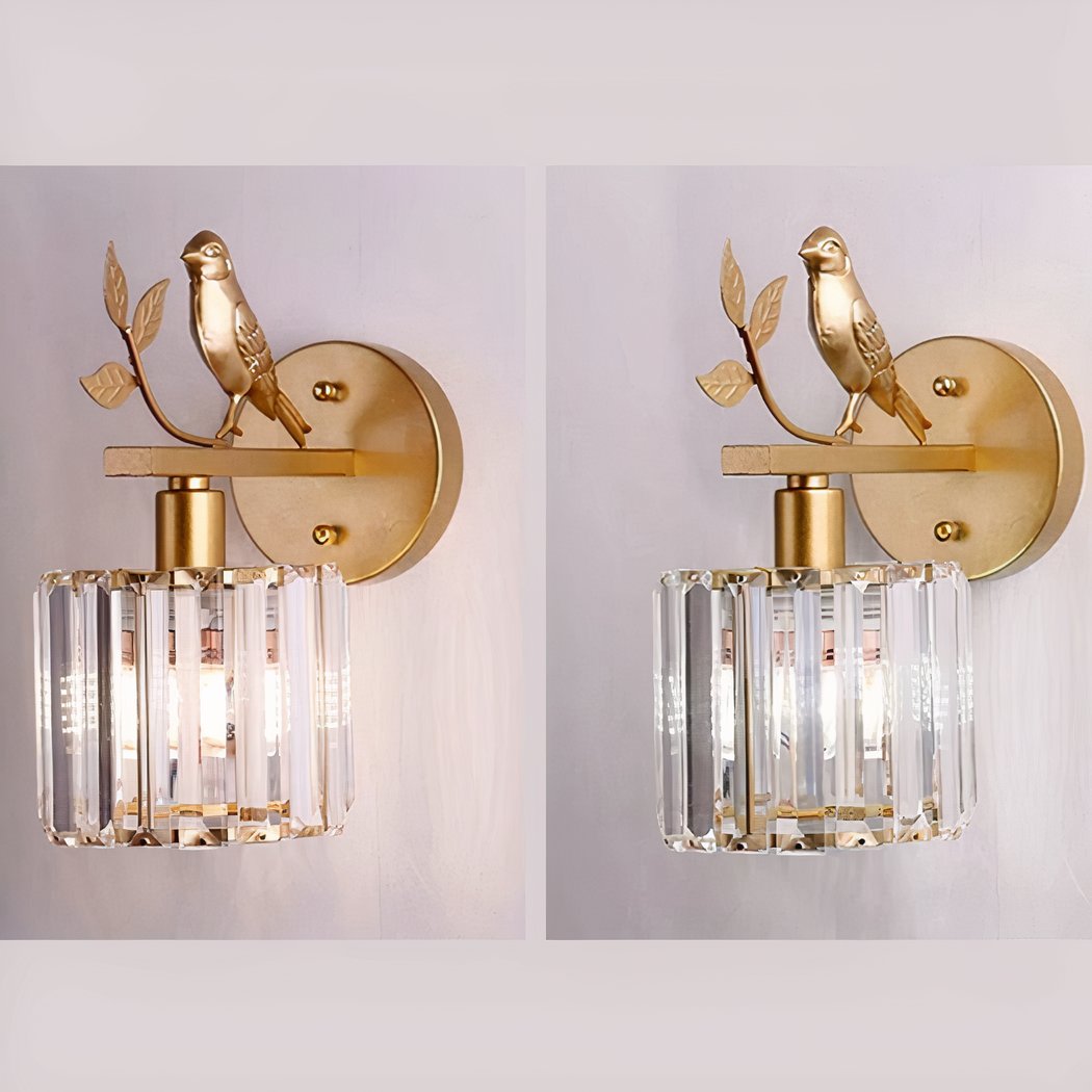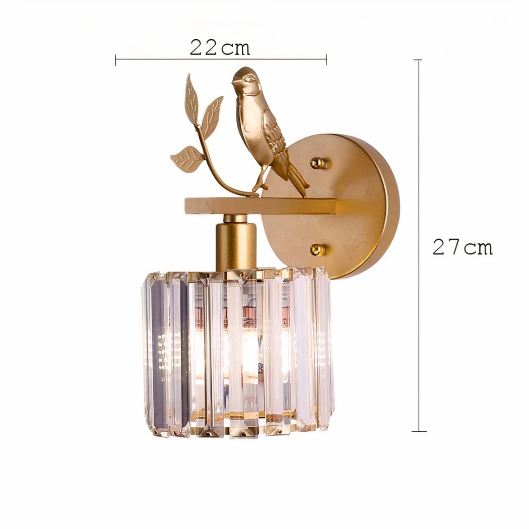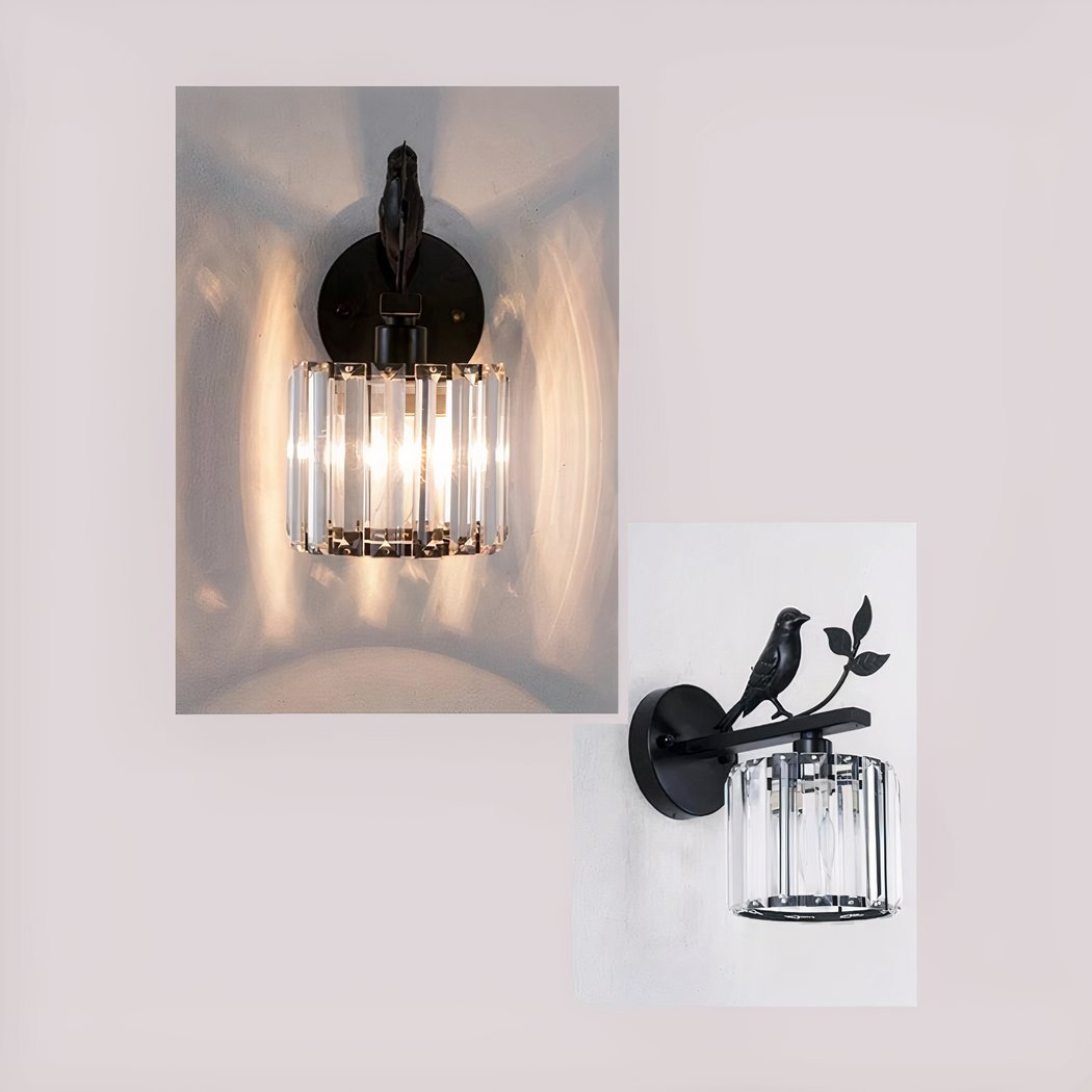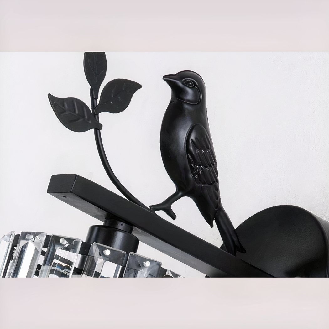 Aplique de hierro y cristal con forma de pájaro