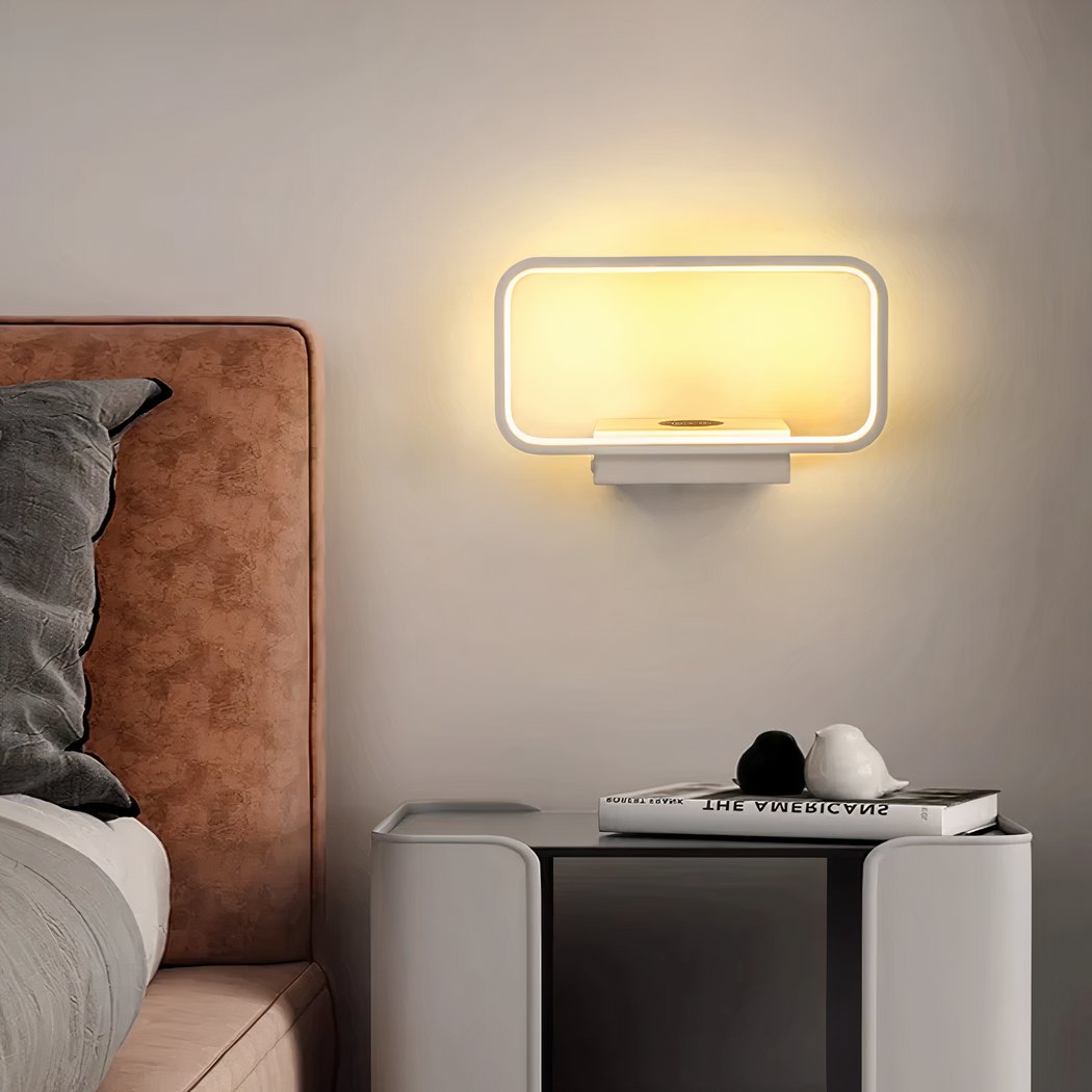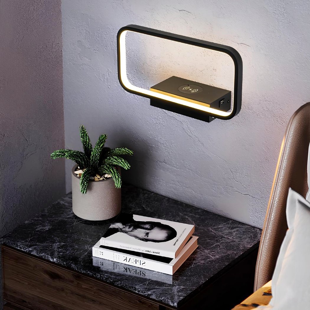 El aplique rectangular con toma USB integrada y carga inalámbrica es una lámpara multifuncional de diseño elegante, ideal para colocar en la cabecera de la cama. Con una función de carga inalámbrica para su smartphone y una toma USB, esta moderna lámpara es práctica sin renunciar a la comodidad.