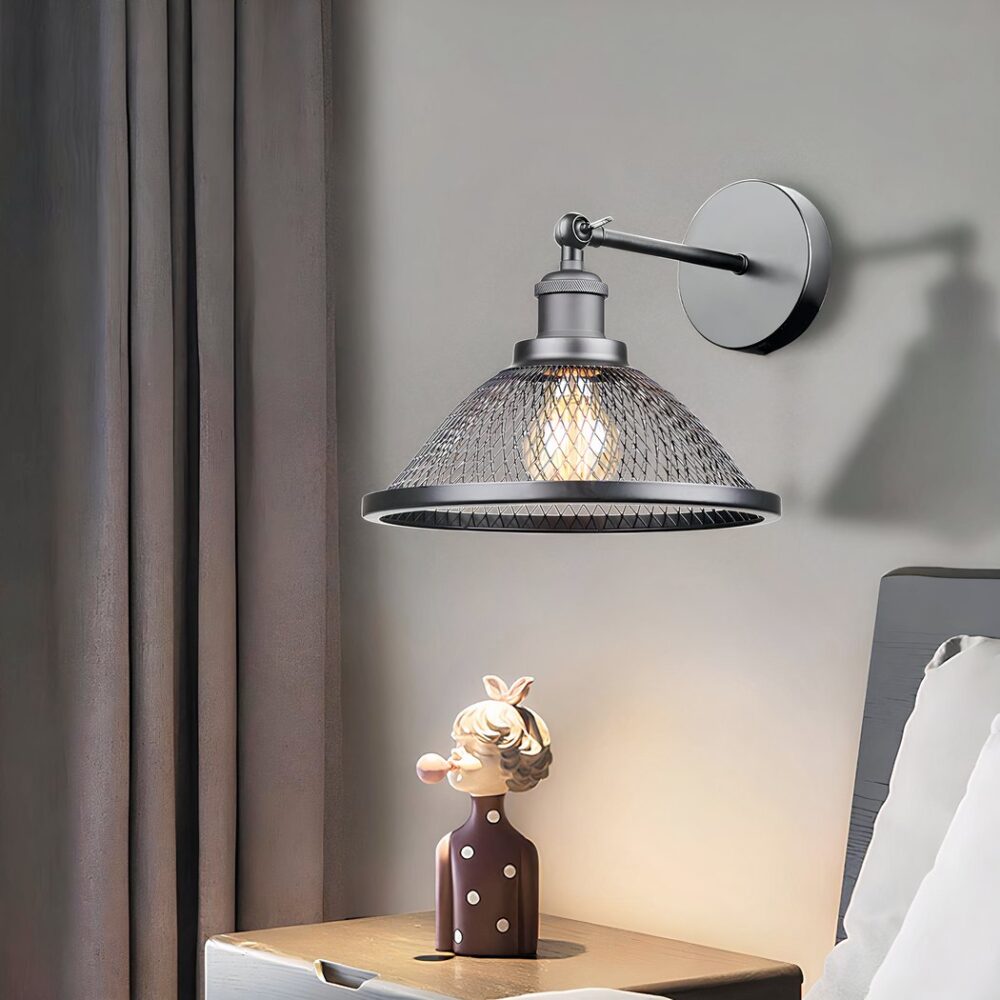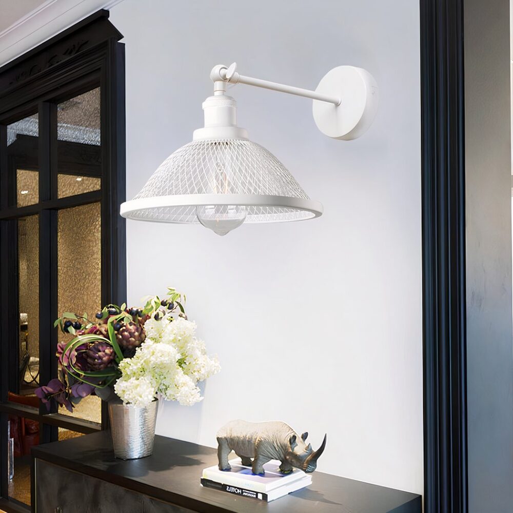 Nuestro aplique de salón de estilo industrial presenta un diseño moderno y urbano en metal blanco o negro. Su pantalla regulable le permite dirigir la luz hacia arriba o hacia abajo según sus necesidades. La malla de la pantalla garantiza una difusión óptima de la luz.