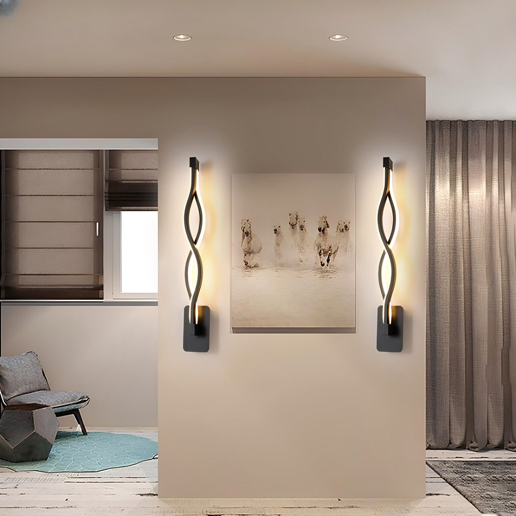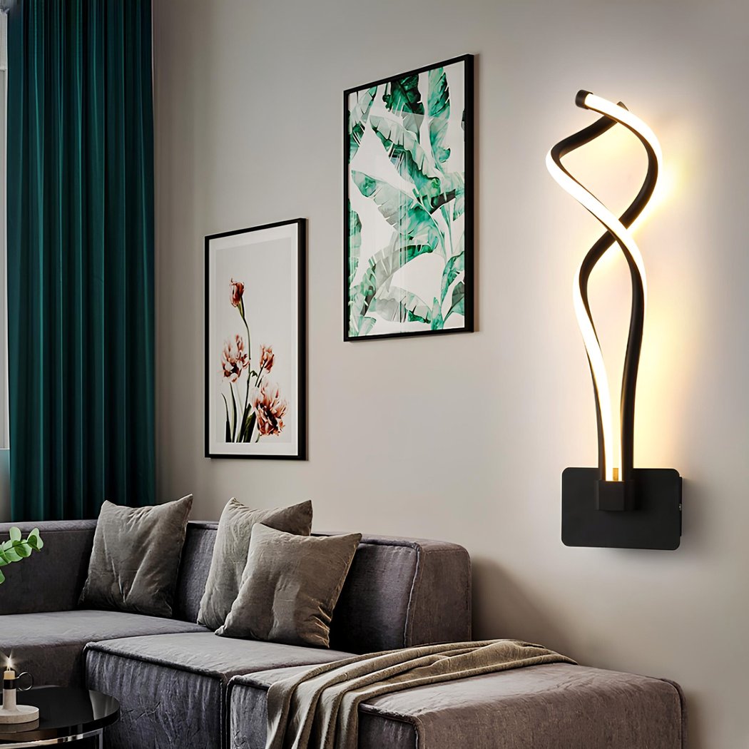 Este es nuestro aplique de salón, con un moderno diseño abstracto en negro y curvas redondeadas. Iluminado por LED que recorren las formas, crea un efecto de profundidad y relieve. Elija entre luz cálida para un ambiente acogedor o luz fría para una atmósfera dinámica.