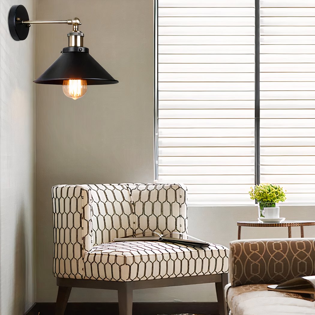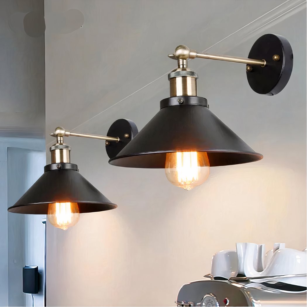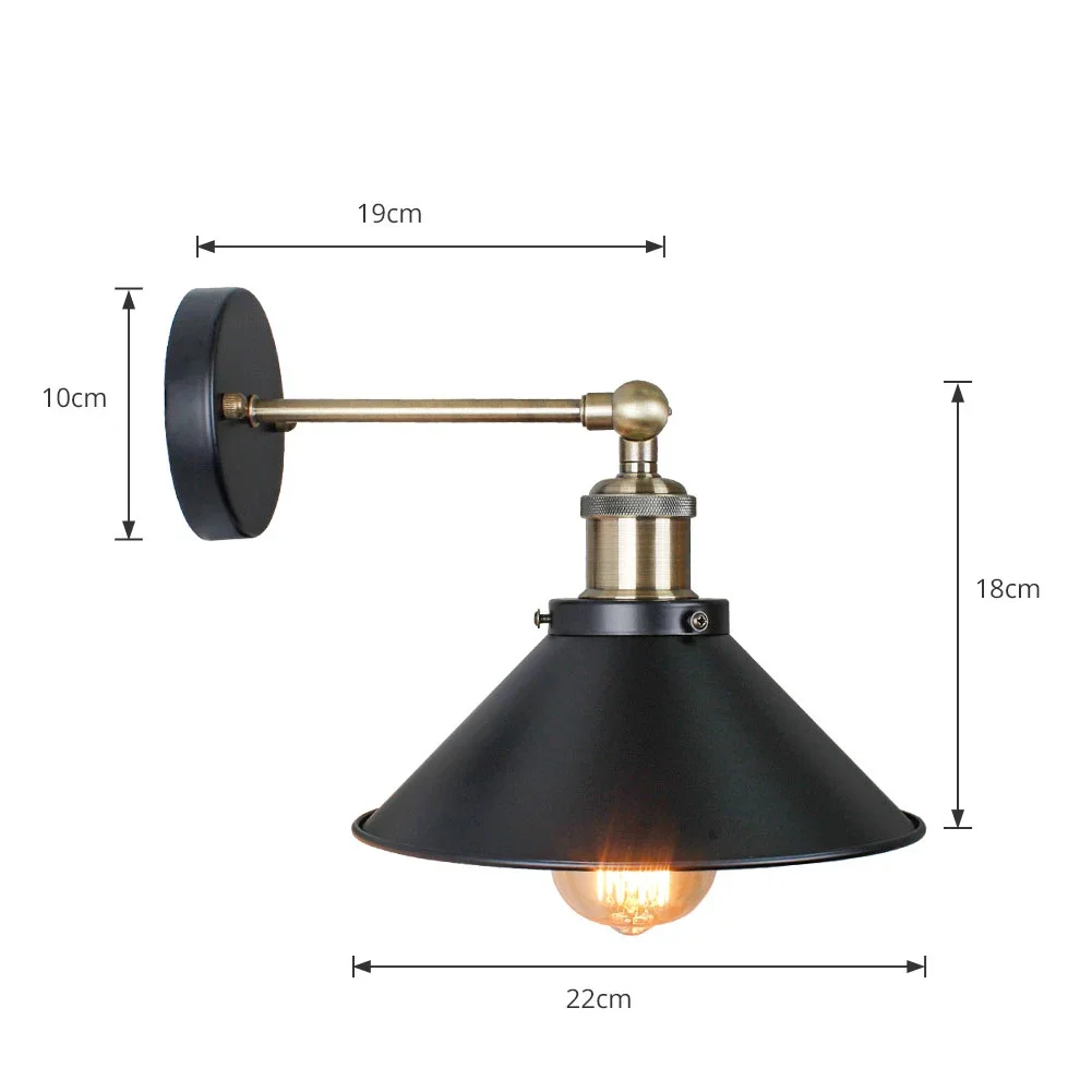Añada elegancia a su hogar con nuestro aplique vintage de metal con pantalla triangular. Su elegante diseño en negro mate y dorado es perfecto para muchas habitaciones. Disponible por separado o en parejas, con descuento para dos, y compatible con bombillas LED para una instalación ecológica.